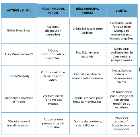 Visuel 4 : Tableau comparatif des outils et acteurs de vérification
